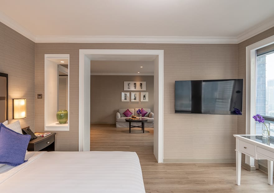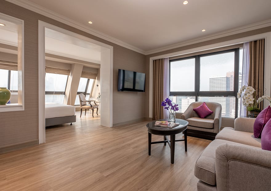 套房不仅提供豪华的起居空间,还可欣赏曼谷天际线的优美景色并配备一流的设施。